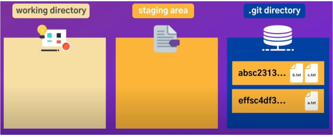 - 작업공간에서 파일들을 수정하고 있다가 b와 c 파일을 add 명령어로 staging area로 옮겨두게 됩니다.