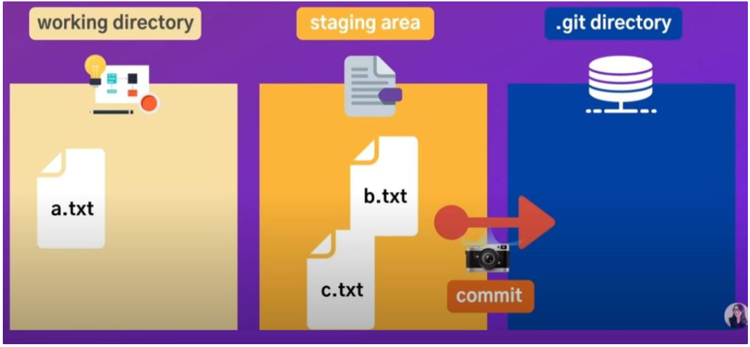 2. commit이라는 명령어로 staging area의 파일들을 깃 레퍼지토리로 저장하게 됩니다.